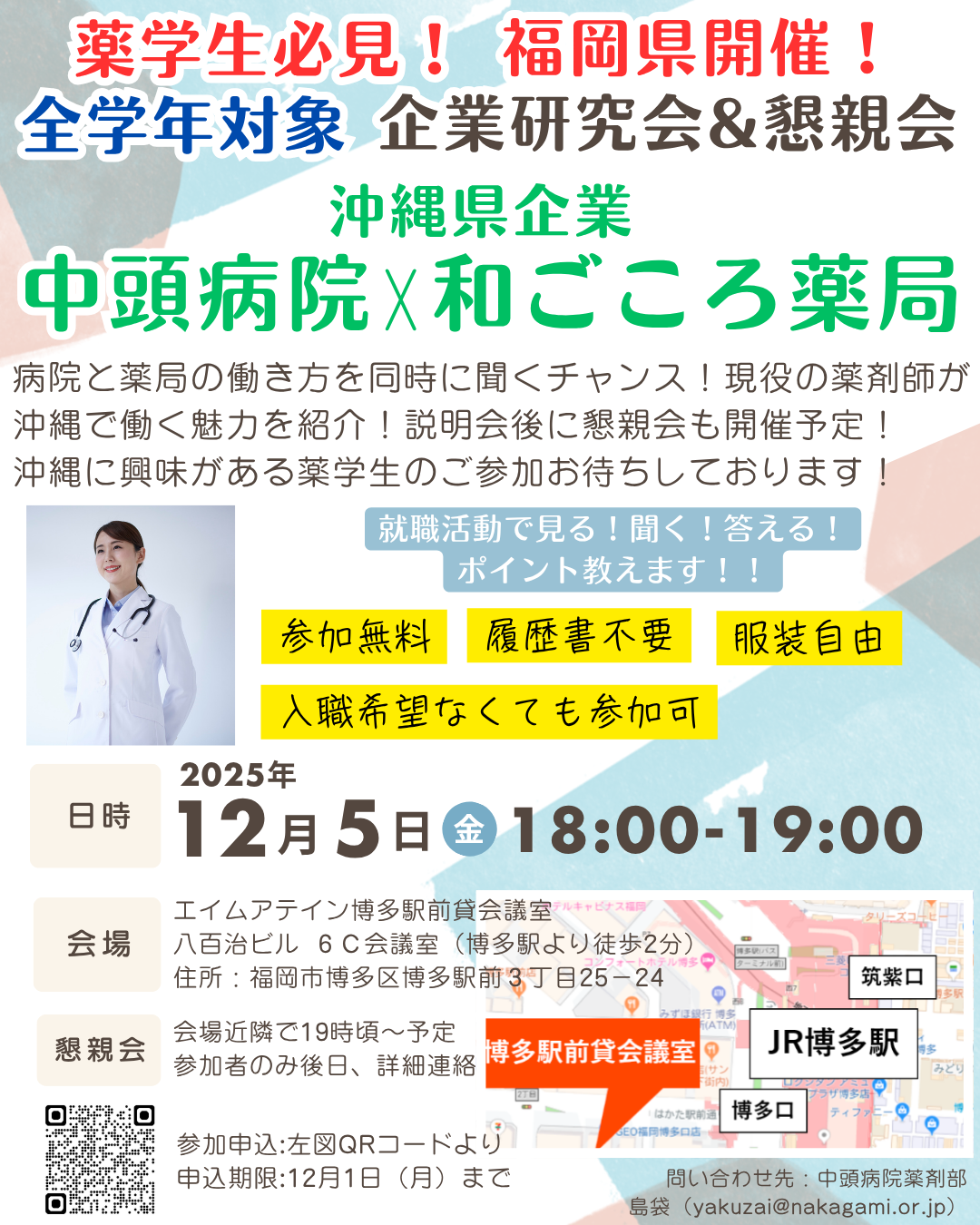 沖縄に興味がある薬学生のみなさまのご参加をお待ちしています。
